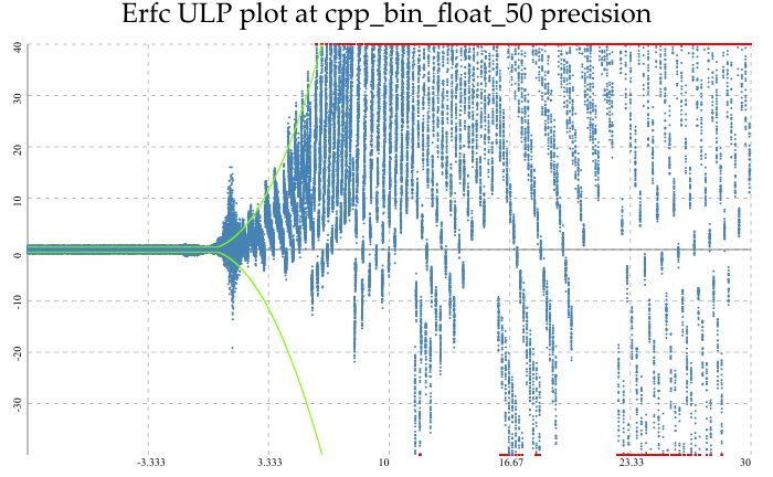 Multiprecision error rates are similar, albeit with a much larger error in calculating the exponent term for erfc:
