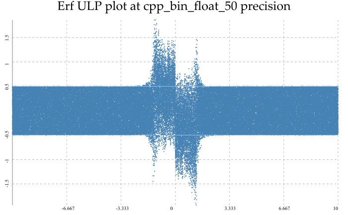 Multiprecision error rates are similar, albeit with a much larger error in calculating the exponent term for erfc: